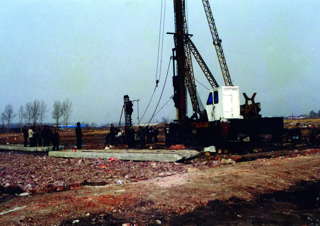 2001年3月,在动画楼施工现场,打桩机打下第一只桩。